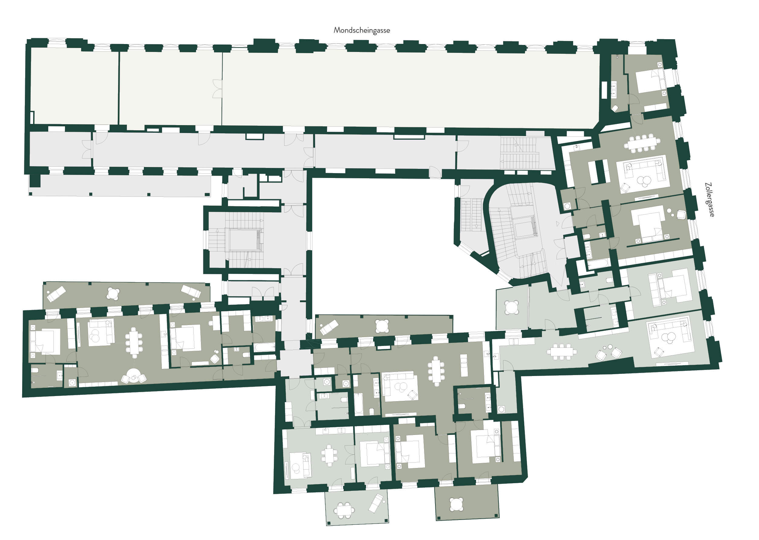 Telegraph Yards liegt in einer verkehrsberuhigten Zone an der Ecke Zollergasse-Mondscheingasse im 7. Wiener Gemeindebezirk Neubau, einer beliebten Wohngegend. Auf der leichten Anhöhe, die südwestlich an die Innenstadt anschließt, haben Sie eine ideale Lage, um das Beste der Stadt in nur wenigen Schritten zur Verfügung zu haben.